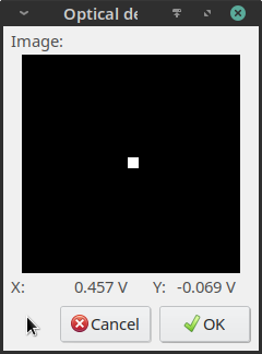To adjust the signal for optical probes, a dialogue can be used (accessible via “Adjust sensor” button next to measurement mode selection or from the main menu), assuming that the vertical probe displacement signal is connected to fast input 1 and horizontal probe displacement signal is connected to fast input 2.