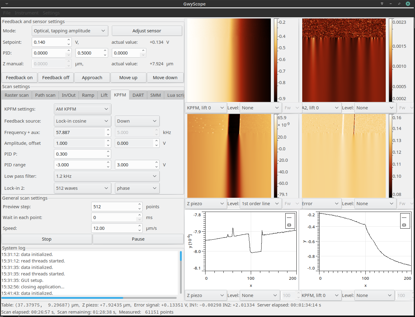 An example of the GUI, when measuring FM-KPFM data, is shown below: